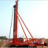 桩机组成 该机包括液压步履桩架和钻进系统两部分。桩架采用液压步履式底盘,自动化程度高,可自行行走及回转,设有液压支腿以辅助行走及回转并增加施工时的整机稳定性。桩架设计有拖行装置,可整机进行转运。立柱为可折叠式箱型立柱,法兰连接方式,由液压缸控制其起降。钻进系统包括动力头与钻具,动力头的输出轴与螺旋钻具为中空式,桩机采用长螺旋成孔,可通过钻杆中心管将混凝土{或泥浆]进行泵送混凝土CFG桩施工,即能钻孔成孔一机一次完成,也可用于干法成孔、注浆置换改变钻具后还可采取深层搅拌等多种工法进行施工。
